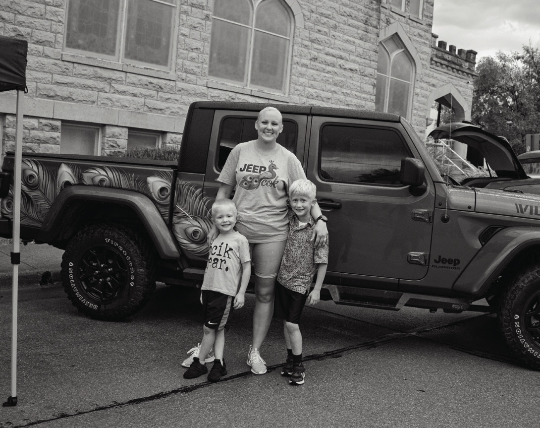 Hannah Emberton | Sun Photos Top Photo: Local Jeep owner poses with her sons in front of her custom vinyl-wrapped Jeep during the first Annual Bloody Bender Bash. From left are: Ryker Pena, Susan Pena, and Severide Pena. Bottom Photo: The first Movie on Broadway, “Night at the Museum” Played at the Carnegie Arts Center on Saturday evening. Due to heavy rain, the event was moved indoors. The next Movie on Broadway will be shown on Nov. 7, according to Library Director Samantha Graven. “Home Alone 3” will be shown at the mural at 18th and Broadway. From left are: Samantha Graven, Ainsley Panek, Axel Panek, Chloe Panek, and Jessica Panek.