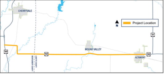 The project’s goal is to improve U.S. 160 from Gartner Avenue at Altamont west to U.S. 169. The project scope includes widening driving lanes, improving existing curves and adding shoulders along the corridor.
