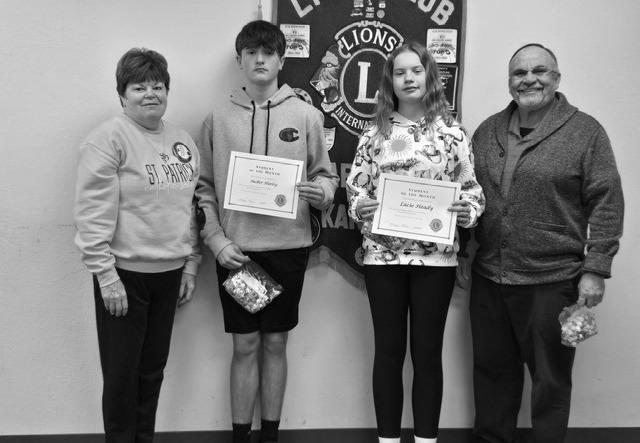 Parsons Middle School students were recently recognized as Students of the Month by the Parsons Lions Club. Pictured above, from left: Lions Club President Maggie Keene, Parsons students Jayda Ford-Ellis and Hunter Lough, and sponsor Diana Quirin. Pictured below, from left: Lions Club President Maggie Keene, Meadow View students Tucker Hurley and Lacie Heady, and Chris Kastler. Courtesy Photos