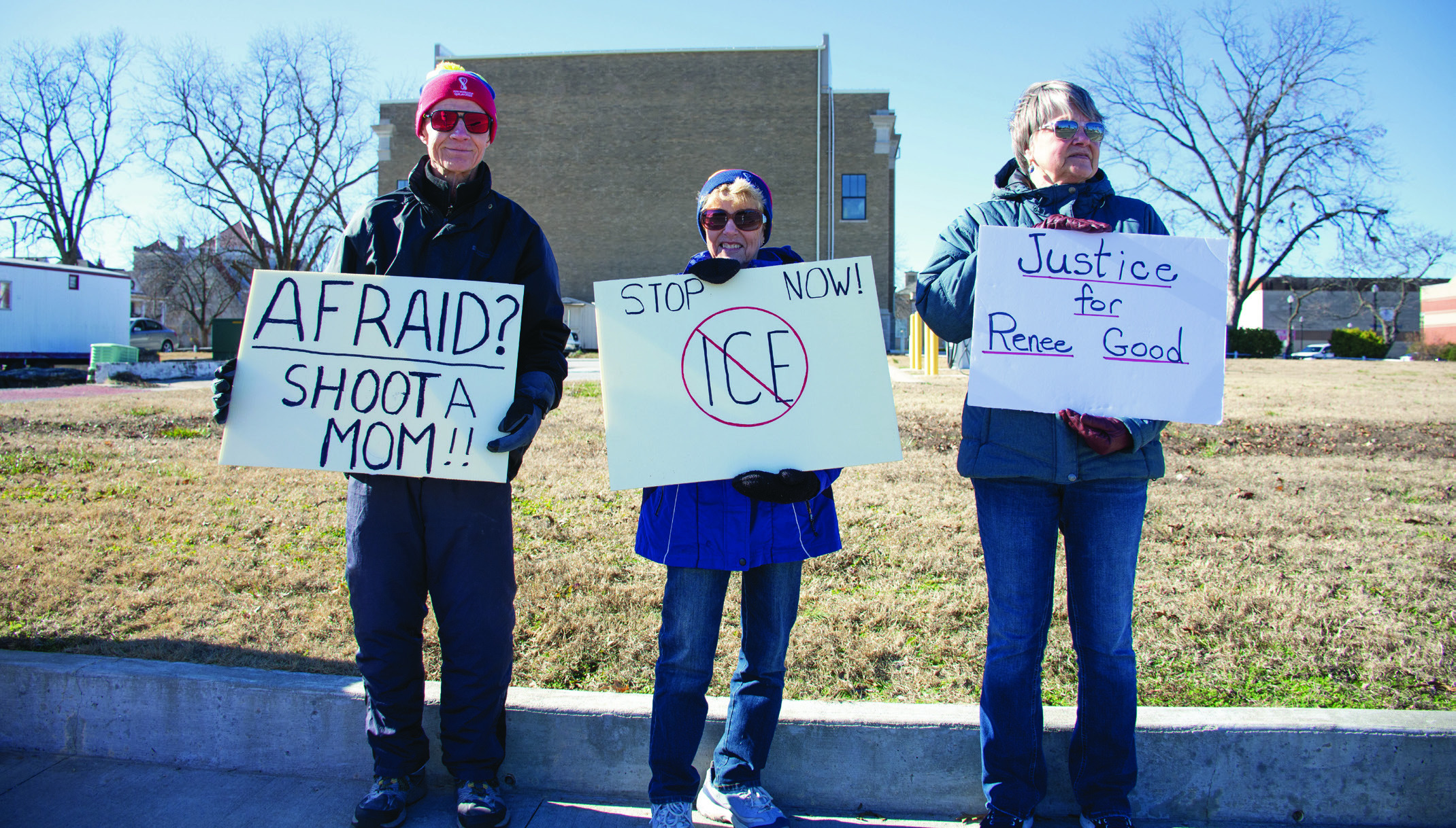 Cathy Dean, the chairperson for the Labette County Democrats, said she was protesting because she was concerned about how ICE is operating.