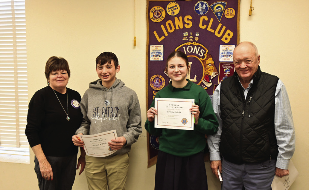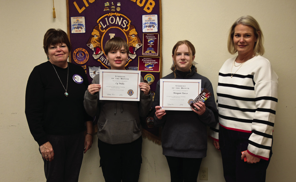 Several Students of the month from local schools were recognized during the recent Lions Club meeting. Above, left: Two Parsons Middle School students were recognized as January Students of the Month. From left are: Maggie Keene, Cy Willis, Meagan Turco, and Dianna Quirin. Above: Two St. Patrick’s Catholic School students were named Students of the Month. From left are: Maggie Keene, Atticus Wilhoft, Gemma Schibi, and Mike Carson. Right: Two Meadow View Grade School Students were recognized as Students of the Month during a recent Lions Club meeting. From left are: Maggie Keene, Ace Alloway, Raylee Nelson, and Donnie Peak. Photos courtesy of the Parsons Lions Club