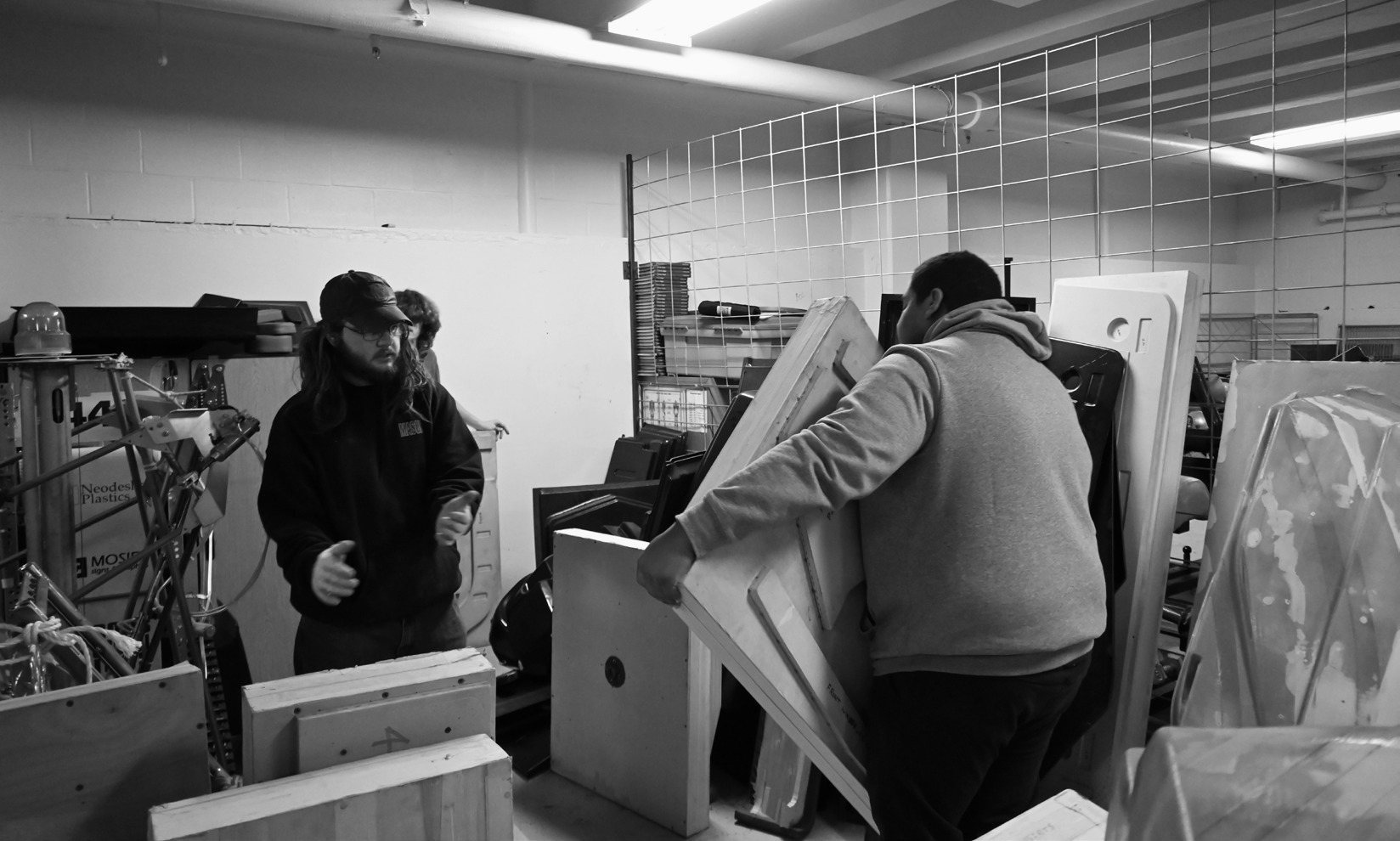 Parsons High School drafting students pull molds from the basement storage area and organize them in preparation for them to be photographed and relocated until such time as they are auctioned off. Courtesy Photo/ USD 503